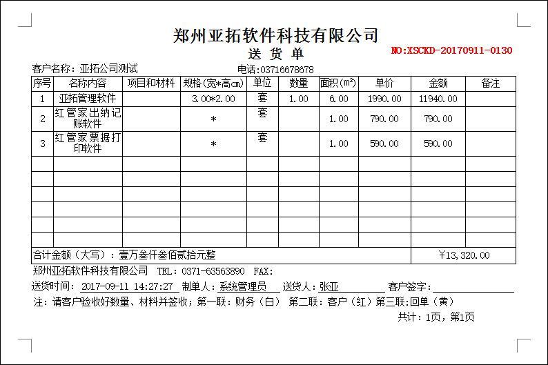 • 送貨單打印模版1301