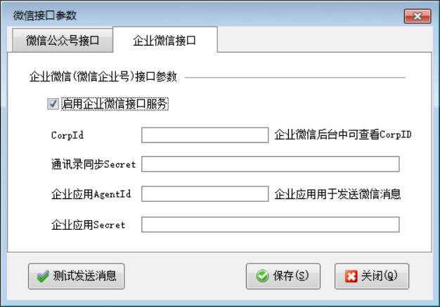 在功能導(dǎo)航窗選擇“擴(kuò)展應(yīng)用”—》“微信參數(shù)設(shè)置”,選擇“企業(yè)微信接口”,啟用并配置相關(guān)設(shè)置。然后點擊測試微信接口。提示測試成功,則可以開業(yè)務(wù)單據(jù)發(fā)送微信消息。
