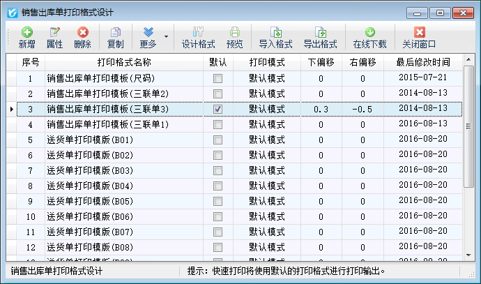 設(shè)置為默認格式:點“更多操作”—》“設(shè)置為默認格式”,可以將當前格式設(shè)置為默認格式,在單據(jù)窗口點“打印”—》“快速打印”時將使用默認打印格式進行打印輸出。
