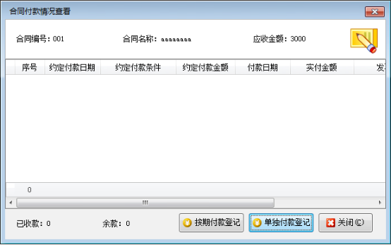 ????合同付款登記:可以登記合同付款情況,支持按期付款登記,也可以單獨付款登記。