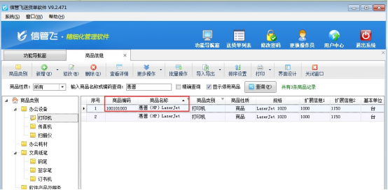 ????信管飛送貨單軟件、信管飛倉庫管理軟件、信管飛RMS(進銷存一體化軟件)開單時都可以直接從商品信息中選擇已有的商品進行快速開單,軟件都支持對商品信息進行排序。開單添加明細時彈出的“選擇商品”窗口中商品信息顯示的先后順序如果需要調整,可以到商品信息中調整。下面我們以信管飛倉庫管理軟件為例介紹一下對商品信息排序的操作方法。