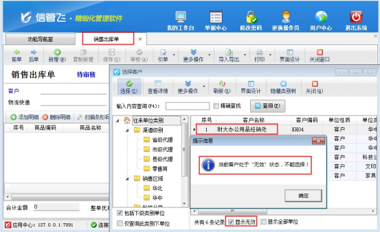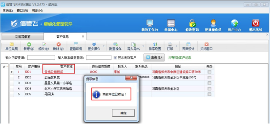 ????需要繼續選擇此客戶開單,可在“基礎資料”—》“客戶信息”中選擇此客戶進行解鎖操作。