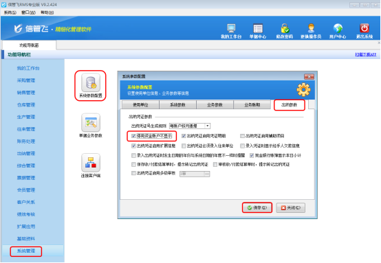 ????在功能導航窗點擊“系統管理”—》“系統參數配置”—》“出納參數”內打勾啟用“停用資金賬戶不顯示”參數,然后點擊“保存”按鈕保存配置。如下圖2所示: