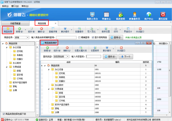 ????信管飛倉庫管理軟件是一款庫存管理軟件,包括采購入庫、銷售出庫、庫存管理、生產管理、成本核算等業務管理功能。軟件包括對商品信息的管理,商品信息集中管理和維護商品資料,可以對商品信息分類管理,方便用戶按商品類別進行匯總查詢。本篇文章詳細介紹一下信管飛倉庫管理軟件中如何維護商品類別?