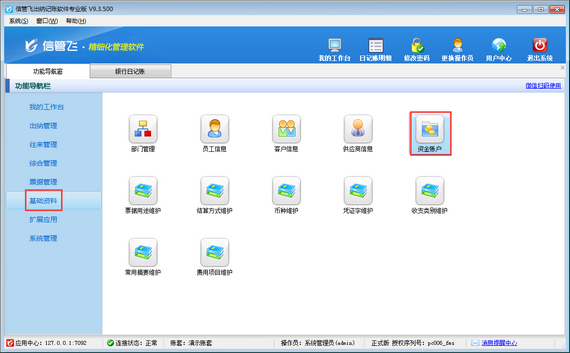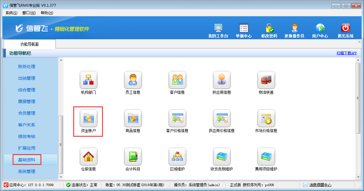 ????信管飛RMS標準版和專業版含有出納管理模塊,可以維護多個資金賬戶(現金賬戶與銀行賬戶),可以清清楚楚記錄每個賬戶的日常流水賬,實際業務需求中可能會出現資金賬戶變動,需要停用之前賬戶及設置在出納日記賬中不顯示此賬戶,下面我們以信管飛RMS專業版為例介紹一下如何停用資金賬戶并將已停用的資金賬戶設置為不顯示?