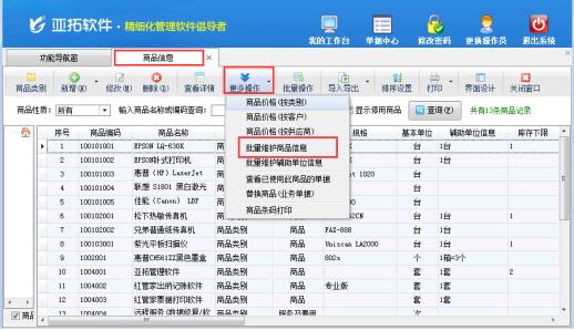 ????然后在商品信息界面,工具欄點擊“更多操作”—》“批量維護商品信息”進入“批量維護商品信息”界面,如下圖所示:
