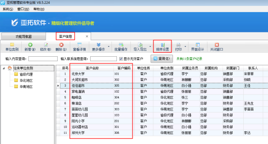 ????排序設置:就是通過單位編碼、名稱,上移下移的方式對客戶列表進行排序。