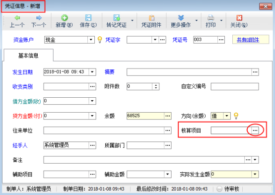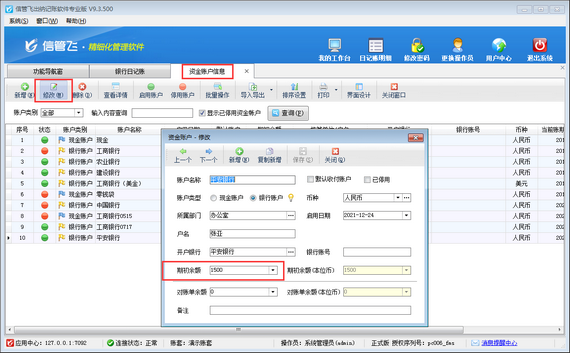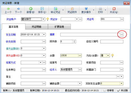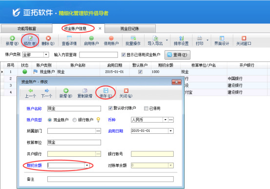 ????這是因為當前憑證是新增資金賬戶時錄入期初余額自動生成的,如需修改,請在功能導航窗點擊“基礎資料”—》“資金賬戶”打開資金賬戶管理界面,修改賬戶信息,修改期初余額數據即可,修改后,憑證可自動更新,如下圖所示。