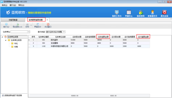 ????應收信用額、應付信用額:設定后,在開采購入庫單和銷售出庫單時會顯示應收應付額度,超過信用額度,軟件會進行提醒。