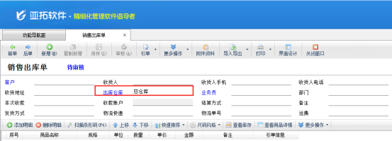 ????設置完成之后,我們開銷售出庫單時,選擇此客戶(藍貓文具店),其客戶資料內所維護的默認發貨方式(第三方物流)及發貨物流快遞(順豐快遞)即可成功提取出來,如下圖所示: