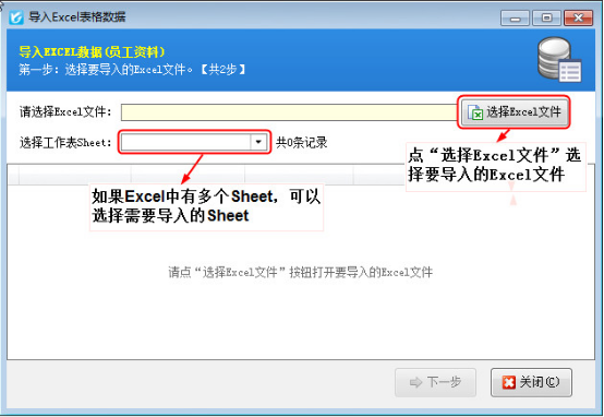 ????2、選擇Excel文件:一個Excel文件(工作簿)可能包括多個Sheet(工作表),軟件支持選擇導入不同的工作表,如下圖所示。