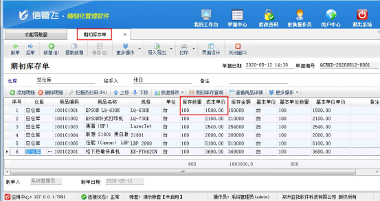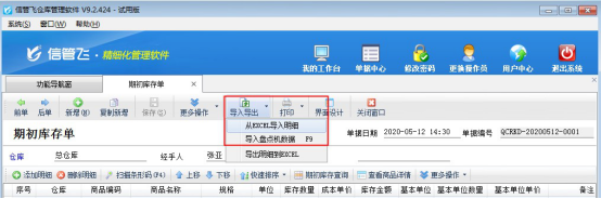 ????期初數據是指在軟件開賬日期之前的業務數據。期初庫存是軟件在開賬前需要先錄入好商品庫存信息。信管飛倉庫管理軟件和信管飛RMS軟件都包括“期初庫存單”,“期初庫存單”可以錄入不同倉庫、不同商品的期初庫存數量和成本單價等信息,實現了軟件在開帳前對期初庫存的高效管理。對于“期初庫存單”的使用,我們以信管飛倉庫管理軟件為例做一下介紹: