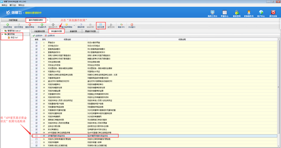 ????在功能導航窗點擊“系統(tǒng)管理”—》“操作員及授權(quán)”,進入“操作員管理及授權(quán)”界面,選擇操作員賬號,然后在“其他操作權(quán)限”界面將“APP首頁顯示資金狀況”權(quán)限勾選取消,然后保存權(quán)限設(shè)置,如下圖所示,設(shè)置操作員“張亞”APP首頁不可顯示資金狀況。
