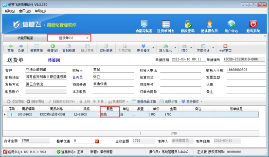 ????界面設(shè)計配置完成后,打開微信端軟件開單界面。會顯示“顏色”列,如下圖所示: