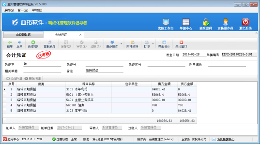 ????亞拓管理軟件專業(yè)版包含的有財(cái)務(wù)處理模塊,其中結(jié)轉(zhuǎn)損益是指在期末,將損益類科目的余額全部結(jié)轉(zhuǎn)到“本年利潤”中,并生成相應(yīng)的會計(jì)憑證,結(jié)轉(zhuǎn)后,損益類科目余額為零的過程。本篇文章我們來介紹一下結(jié)轉(zhuǎn)損益功能如何使用?