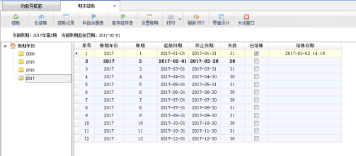 ????結(jié)賬記錄:點(diǎn)擊“結(jié)賬記錄”按鈕,在彈出的“期末結(jié)賬記錄”窗口可以查看歷史的結(jié)賬操作記錄。