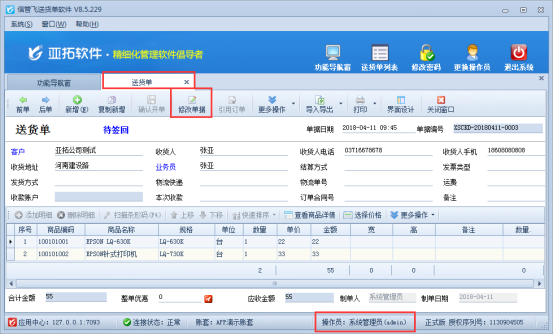 信管飛送貨單軟件通過狀態控制實現簡單的流程管理(待簽回(新開單)-》已簽回(業務員送貨回來或者客戶已簽收快遞)-》已過賬(財務確認已收到貨款)),“已簽回”及“已過賬”的單據無法修改,但是部分情況下可能會需要修改“已簽回/已過賬”的單據,如何修改呢?下面詳細介紹一下操作過程。圖一 “已簽回”及“已過賬”的送貨單單據無法修改,如確需要修改,需要將其標記回“待簽回”狀態,才可以修改成功,在送貨單列表工具欄中點擊“單據操作”—》“反審單據—標記為待簽回”,可以將“已簽回”或者“已過賬”狀態的送貨單單據重新標記為“待簽回”狀態。
