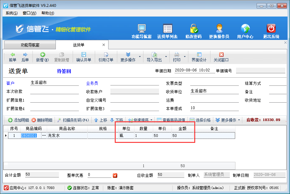 信管飛RMS、信管飛送貨單軟件等都支持開單前錄入好商品的預設價格,如預設采購價、預設售價等,方便開單選擇商品時自動獲取價格信息。如下圖所示,設置商品“洗發水”預設售價50元/瓶,以送貨單軟件為例示范一下如何設置新開送貨單時可自動取商品預設售價。    軟件支持價格優先級設置,啟用價格優先級后軟件可以自動調取我們設定的價格,可以幫助我們快速的開單,不需要手動的輸入商品的價格,節省了我們寶貴的時間,同時也提高了單據的準確性。    在功能導航窗點擊“系統管理”—》“價格優先級”進入“商品價格優先級設置