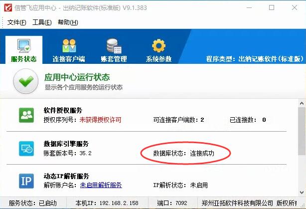 部分信管飛軟件用戶有時重裝電腦操作系統后軟件無法登錄,在軟件應用中心內查看數據庫狀態為連接失敗,如下圖所示。    一般情況下如出現以上問題,可根據下面解決方法進行解決:    在軟件應用中心程序中,點擊“系統參數”->“數據庫參數”打開數據庫參數配置界面,然后點擊“智能修復軟件環境”按鈕打開智能修復軟件環境界面智能修復軟件環境即可,如下圖所示(或者在軟件應用中心程序中點菜單“工具”->“智能修復軟件環境”同樣可以打開智能修復軟件環境界面智能修復軟件環境)。  &n