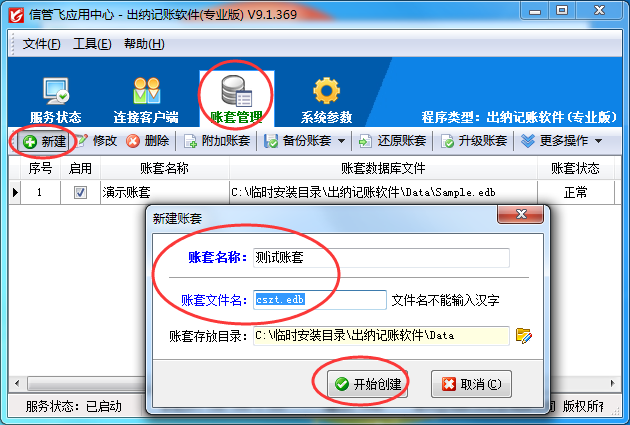 賬套即賬套數據庫,這是一個會計業務引申出來的概念,賬套數據庫中存儲業務數據。使用軟件之前建議新增加一個賬套,用于重新錄入和管理數據,信管飛RMS信管飛倉庫管理軟件信管飛送貨單軟件信管飛出納記賬軟件信管飛票據打印軟件等軟件的賬套都是在主機電腦的應用中心程序上集中管理的,下面我們以信管飛出納記賬軟件為例詳細介紹下在使用軟件之前如何新增加一個賬套?