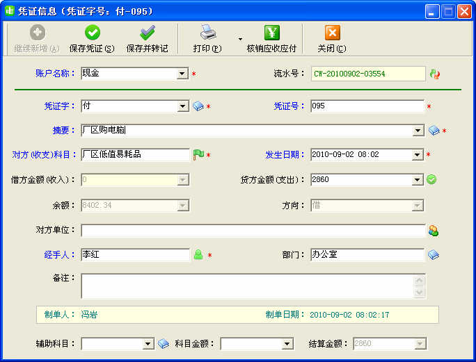4、應收應付款、個人借款的修改邏輯改變:已部分結銷也不允許刪除和修改(以前是全部結銷前都可以修改)