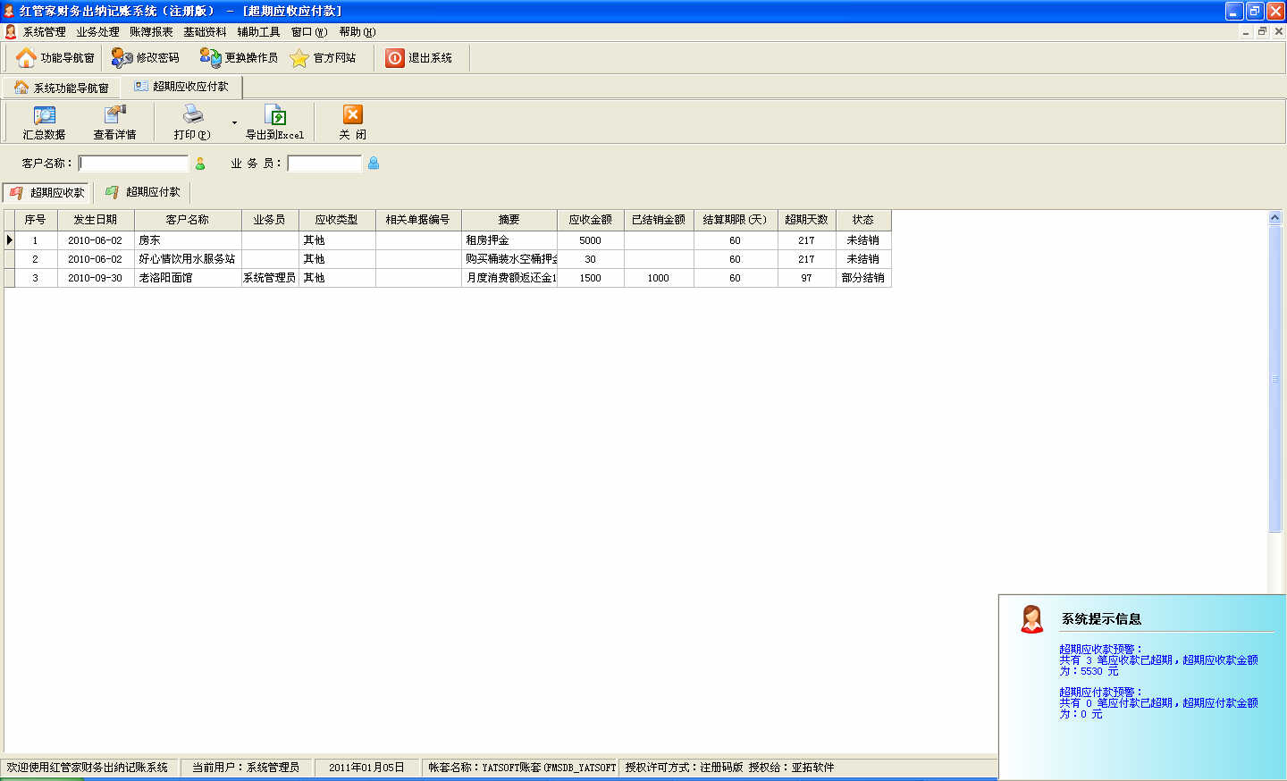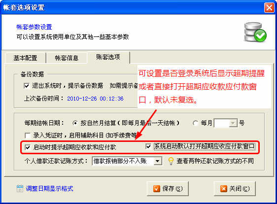 1、增加登錄后可直接打開超期應收款和應付款功能,另外也可以彈出右下角提醒窗口。(具體可以在賬套選項設置中進行設置)