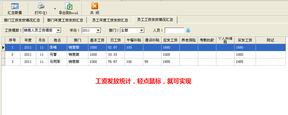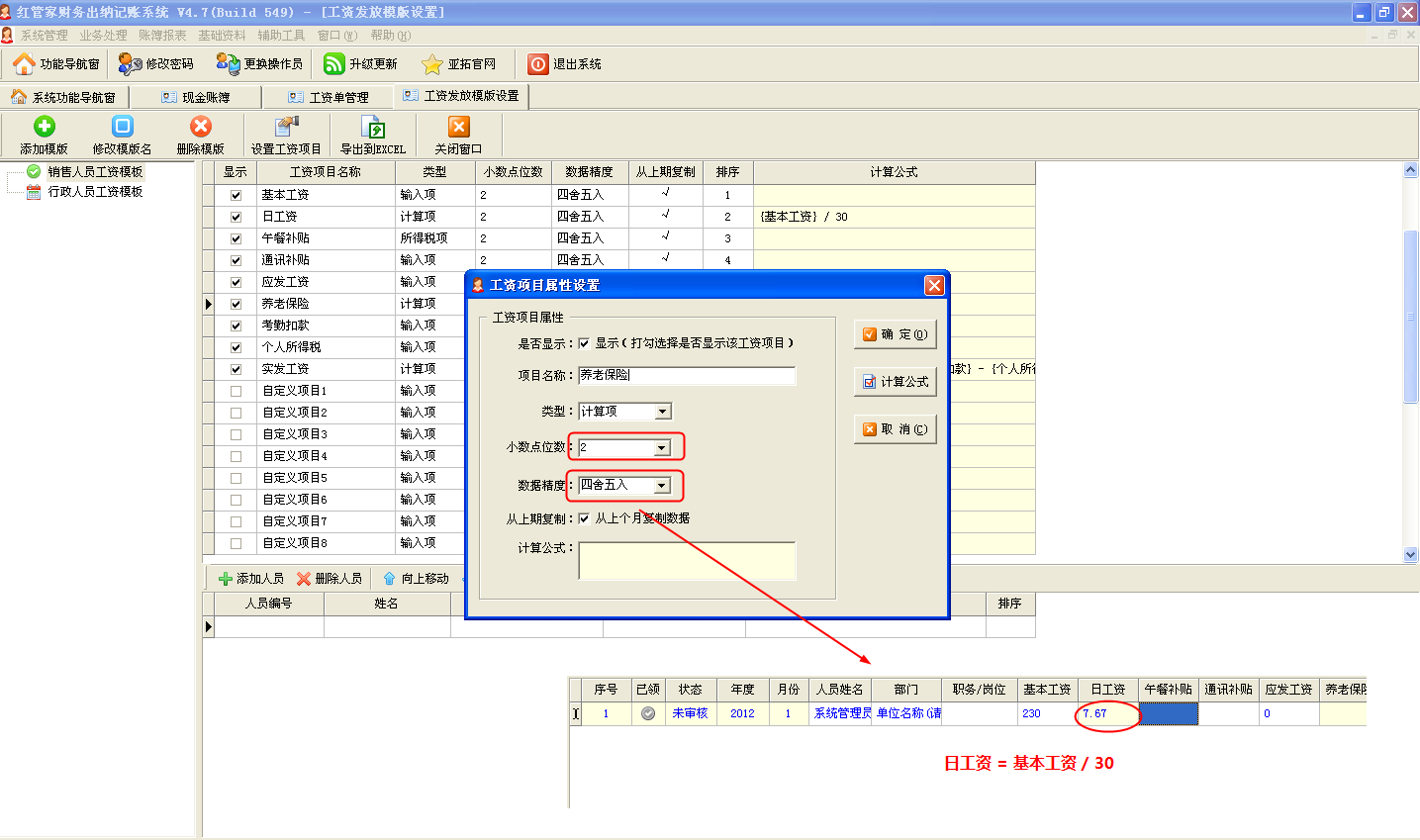 亞拓軟件的紅管家出納記賬系統在2010年率先在同類出納軟件中推出工資管理功能,該功能包括工資發放模板管理、工資發放管理、工資發放統計、工資單打印等功能,并實現了工資發放與記賬的雙向關聯,特別適合中小企業管理工資。系統主要有以下特點: 1、工資項目可以靈活定義,系統預置20項工資項目。 2、工資項目支持定義公式,可計算工資項,