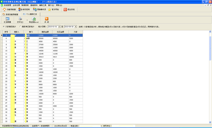 好好用財務出納記賬系統發布V2.6(Build 374)下載地址:http://www.hzyouth.org.cn/download/FPSetup_Msde.exe更新內容:(2010-09-06)1、解決英文操作系統或未采用默認日期格式,比如日期間隔符采用/(2010/9/6)時,新增憑證、新增應收應付款時報錯的問題。2、個人借款統計,增加欠款統計功能,此功能與個人借款匯總功能的不同在于:欠款情況