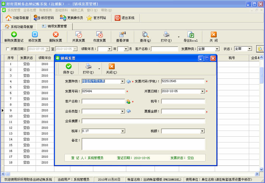 亞拓軟件最新發布《好好用財務出納記賬系統》V3.0(Build 399)下載地址:http://www.hzyouth.org.cn/download/FPSetup_Msde.exe更新日期:2010.10.24程序版本: V3.0(Build 399)(1)完善了發票管理功能,進項發票(別人開的發票)和銷項發票(企業開出的發票)能夠分別進行統計和查詢。支持部分省份金稅(普通聯網發票)數據的