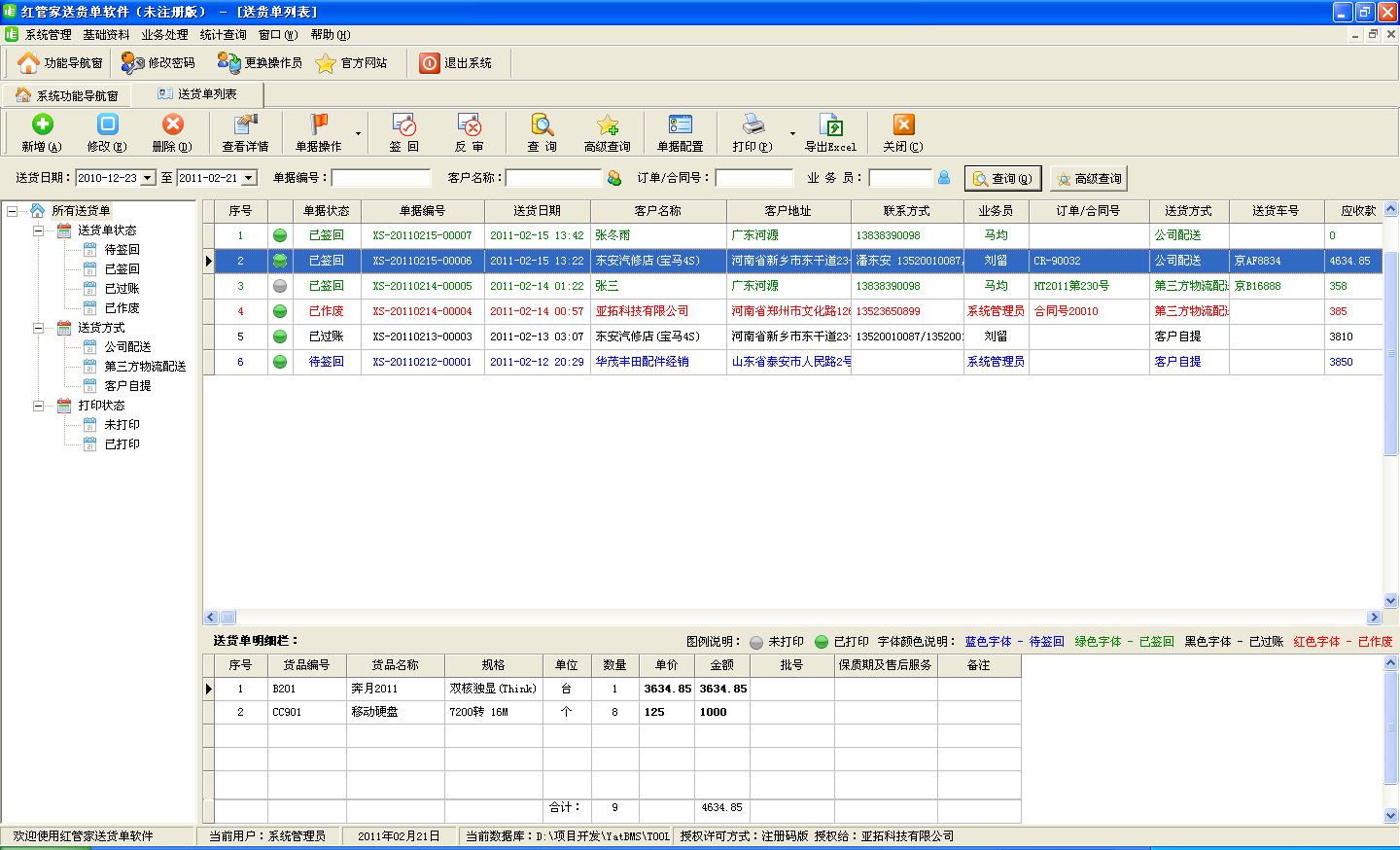更新說明: 亞拓軟件發(fā)布《紅管家送貨單軟件》(送貨單打印軟件、發(fā)貨管理軟件)V1.8(Build 151),在此版本中,我們新增多款對賬單、年度匯總統(tǒng)計的打印模版等。 更新日期:2011.03.23程序版本: V1.8(Build 153)1、增加快遞單打印功能,暫時僅提供申通快遞單的打印模版,后續(xù)我們會逐步增加主要物流快遞單打印模版。2、新增了3個