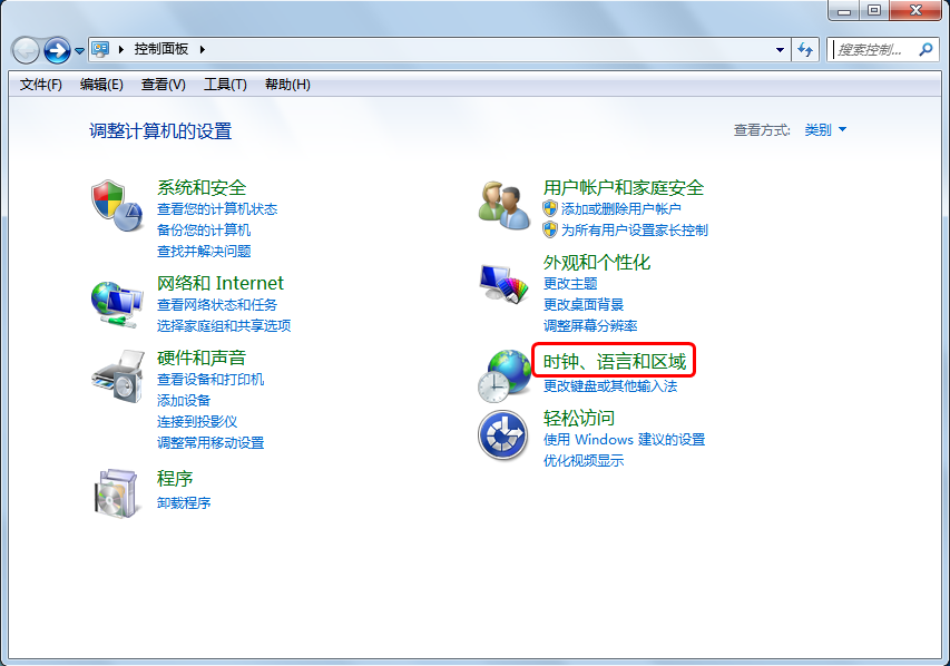在控制面板中找到“時鐘、語言和區(qū)域”