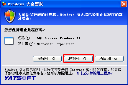 3、打開程序,這時候系統(tǒng)防火墻會彈出如下的提示信息,請務(wù)必點擊“解除阻止”(Windows XP系統(tǒng))或“允許訪問”(Windows 7/Vista系統(tǒng))。如下圖所示: