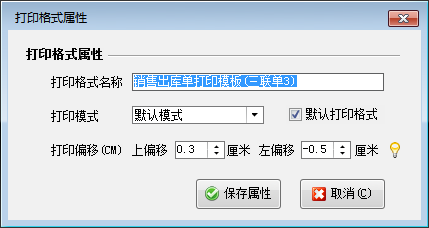修改格式屬性:點“屬性”按鈕可以修改選中的打印格式模板的屬性。其中打印模式包括默認模式、連續打印模式和填充空行模式。