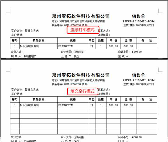 下圖為采用“連續打印模式”和“填充空行模式”打印出來的內容的不同之處: