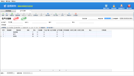 (1)未執行:新增加的生產計劃單,處于“未執行”狀態。