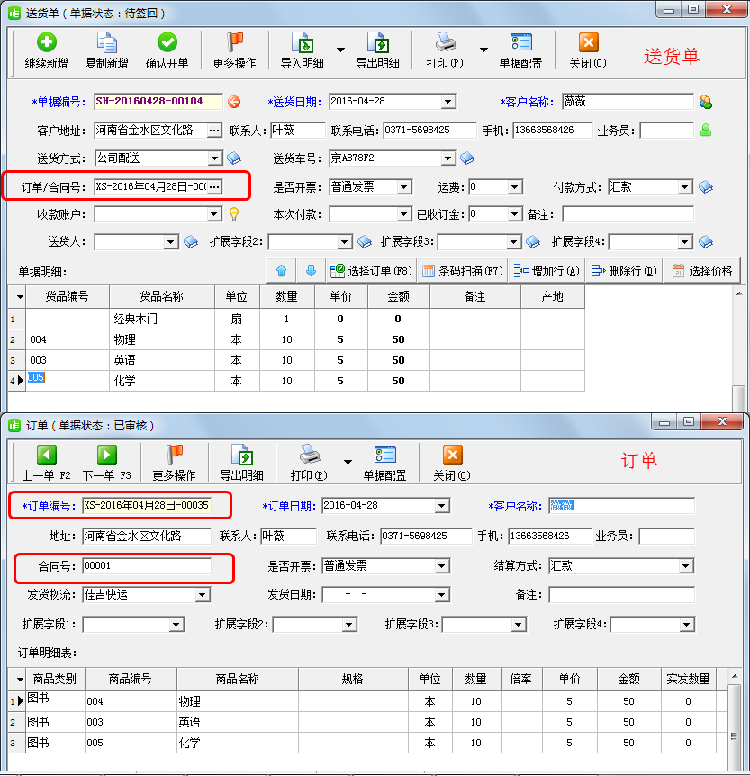 送貨單軟件中如何設置“訂單/合同號”調取合同號?