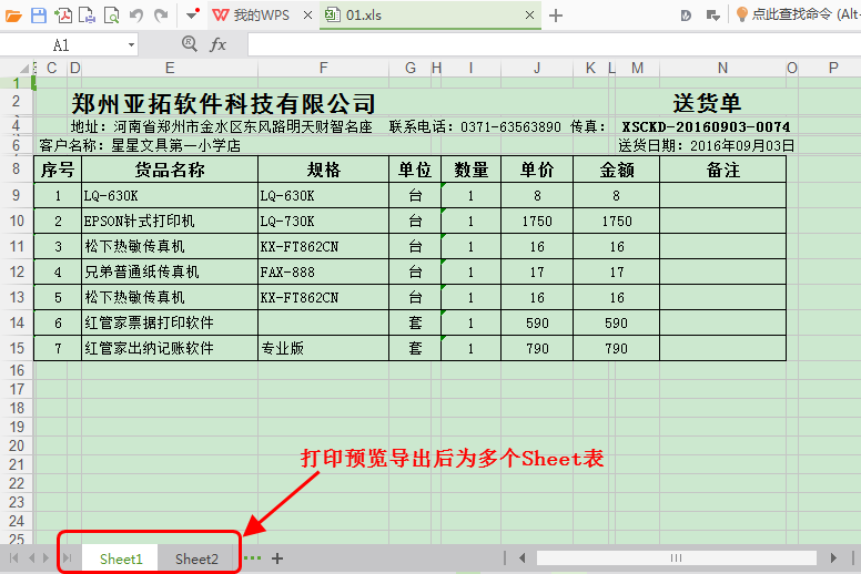 亞拓管理軟件、紅管家倉庫管理軟件、紅管家送貨單軟件、紅管家出納記賬軟件等軟件內都提供的有打印預覽及打印功能,可以打印送貨單、銷售明細對賬單及各類報表,多數用戶會將銷售單或者是銷售明細對賬單的打印預覽效果導出為Excel文件直接發給客戶與客戶進行對賬,但是多頁時將打印預覽效果直接導出后是多個Sheet表,如下圖二所示,本篇文章以紅管家送貨單軟件為例詳細介紹下打印預覽導出為Excel后為多個Sheet表的情況該如何解決?