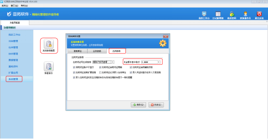 登錄軟件,在功能導航窗點“系統管理”—》“系統參數配置”即可進入“系統參數設置”界面,點擊“出納參數”,如圖1所示。