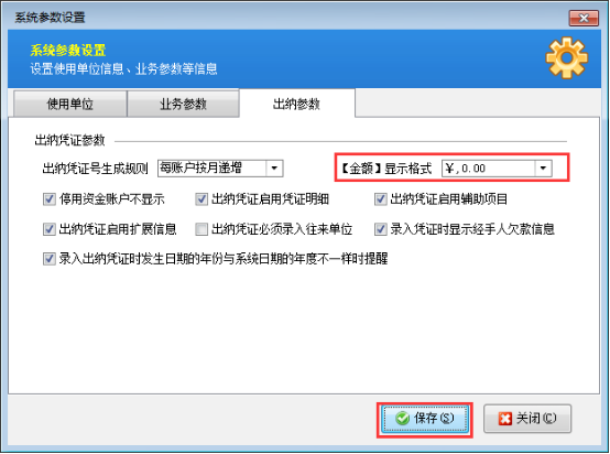在出納參數中對“金額”選擇相應的顯示格式后點擊“保存”按鈕即可,在軟件中金額的顯示格式會改變。如圖3所示設置后,在圖4的現金日記賬列表可看到相應的金額顯示格式。