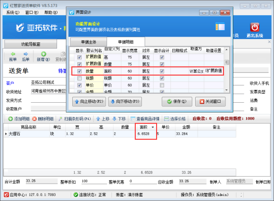 對于不同的商品都能夠使用軟件開單計算,亞拓軟件下的送貨單軟件亞拓管理軟件等都支持可在開單界面設置擴展數值來支持計算公式的使用,比如有些商品需要寬乘高來計算面積。為了使客戶對于計算公式的計算結果更便捷使用,軟件可設置修改由配置計算公式得的計算結果。