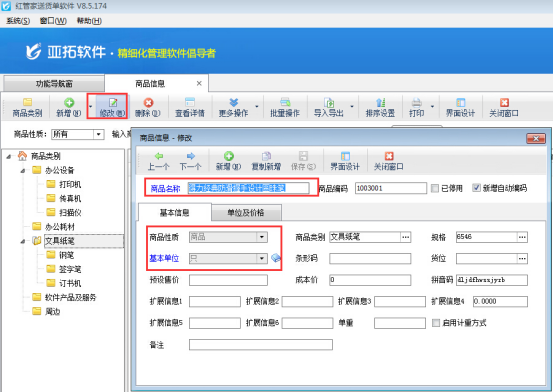紅管家送貨單軟件亞拓管理軟件等都支持客戶自己維護商品信息,商品的基本單位可直接在維護商品信息的時候填寫好,在開單使用商品信息后,現在對商品單位進行修改,商品的基本單位是鎖定狀態,為了更加自定義商品單位,軟件支持修改已使用商品的基本單位。