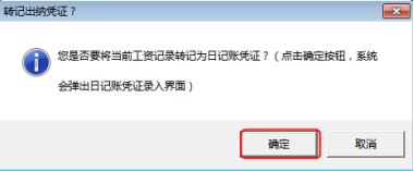 工資單已轉(zhuǎn)記過憑證后無法再次被轉(zhuǎn)記憑證。如果這個工資單記錄已經(jīng)轉(zhuǎn)記過憑證,再次進行轉(zhuǎn)記現(xiàn)金或者銀行憑證時,系統(tǒng)會提示“當前單據(jù)已轉(zhuǎn)記過出納憑證,是否打開查看?”,如圖4所示。