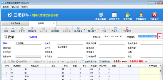紅管家送貨單軟件、亞拓管理軟件等在單據(jù)保存的時(shí)候會自動生成單據(jù)編號,可根據(jù)此單據(jù)編號來查詢單據(jù)信息。為了更加自定義編號內(nèi)容,軟件支持修改自動生成的單據(jù)編號,以送貨單軟件為例,示范如何修改已生成的單據(jù)編號。