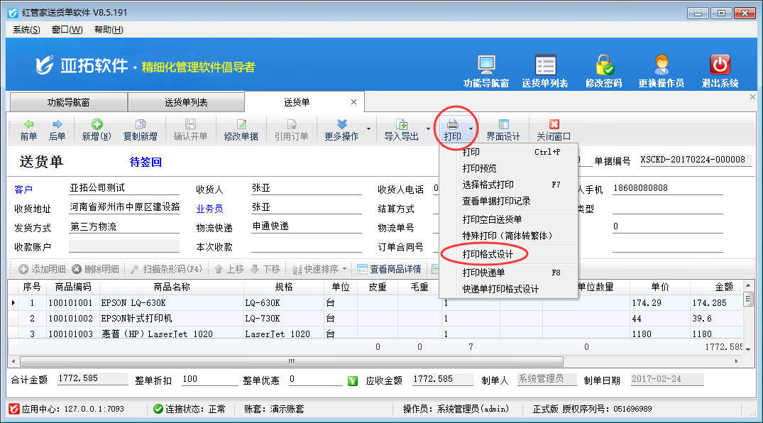 歡迎免費(fèi)下載試用這款可以自定義打印格式樣式送貨單打印軟件紅管家送貨單軟件