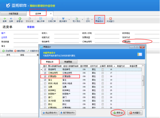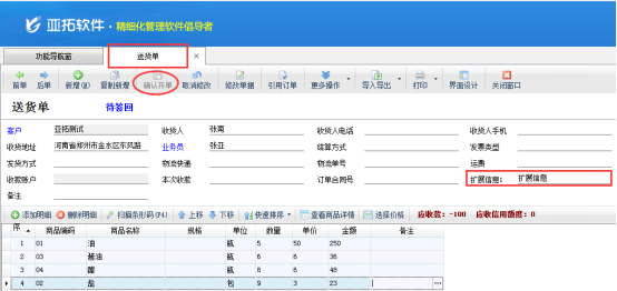 亞拓軟件下的送貨單軟件、亞拓管理軟件等最新版本增加在明細(xì)列表中可以顯示單據(jù)主體項(xiàng)的擴(kuò)展信息。我們以送貨單軟件為例,示范下如何設(shè)置在送貨單的明細(xì)對(duì)賬單上顯示單據(jù)主體的擴(kuò)展信息?