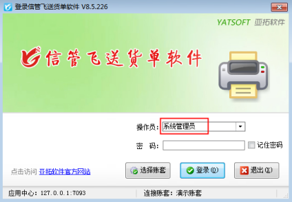亞拓管理軟件、信管飛送貨單軟件、信管飛倉(cāng)庫管理軟件、信管飛出納記賬軟件、信管飛票據(jù)打印軟件等安裝后默認(rèn)登錄的操作員為“系統(tǒng)管理員”,如圖1、圖2所示。部分用戶在使用軟件時(shí)需要將“系統(tǒng)管理員”修改為自己的名字,在軟件內(nèi)如何修改呢?本篇文章以信管飛送貨單軟件為例詳細(xì)介紹一下如何修改“系統(tǒng)管理員”名字?