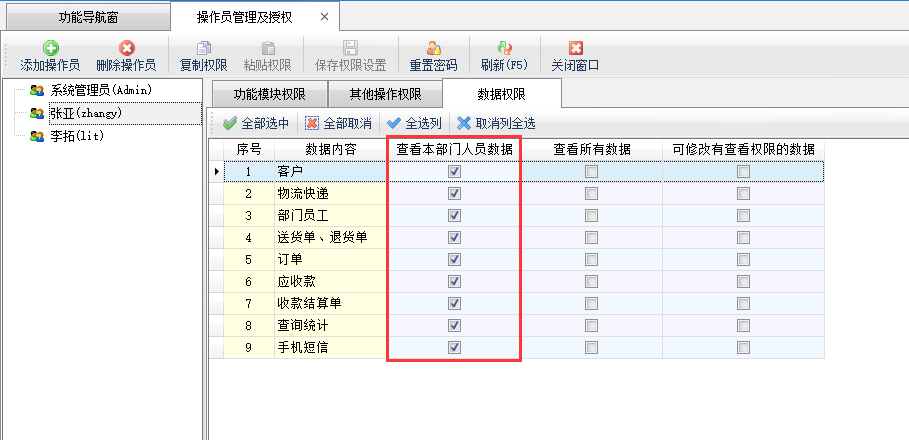 送貨單軟件如何設置操作員僅能查看本部門人員數據?
