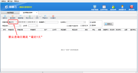信管飛送貨單軟件、信管飛RMS(進(jìn)銷存軟件)、信管飛倉庫管理軟件內(nèi)都包含了統(tǒng)計(jì)查詢功能(單據(jù)匯總表、單據(jù)明細(xì)表等統(tǒng)計(jì)查詢報(bào)表),軟件內(nèi)統(tǒng)計(jì)查詢功能默認(rèn)的查詢?nèi)掌跒椤白罱?天”(如下圖1所示),但是如果需要修改默認(rèn)查詢?nèi)掌,該如何修改呢?下面我們?A title="" href="http://www.hzyouth.org.cn/tools/songhuo.html">信管飛送貨單軟件為例詳細(xì)介紹下軟件內(nèi)如何修改默認(rèn)查詢?nèi)掌凇?/P>