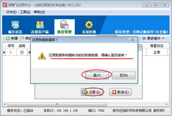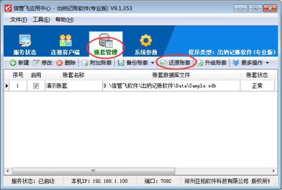 本文章以信管飛出納記賬軟件為例,演示下如何還原賬套備份。