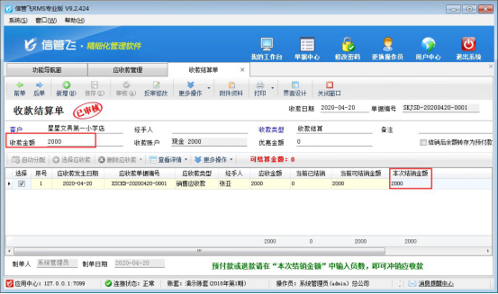 信管飛RMS軟件中如何對應收款進行收款結算?